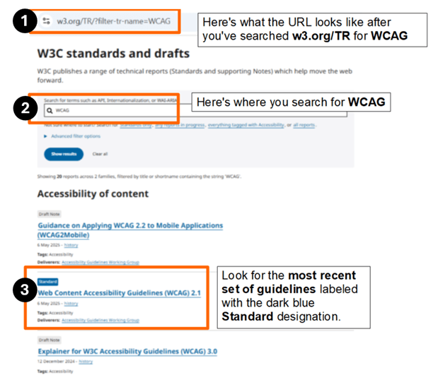 To access the latest version of the web content accessibility guidelines (see Figure 2 below):