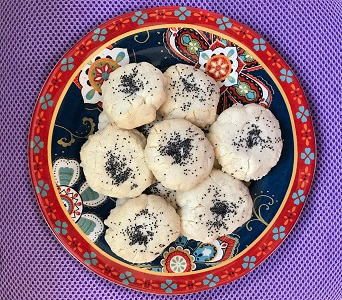 If you’re familiar with nan-e berenji, you know they’re disk-shaped, exotically spiced cookies a bit like Scottish shortbread—but made with rice flour instead of wheat flour and, traditionally, decorated with a distinctive stamped pattern and a sprinkling of poppy seeds.